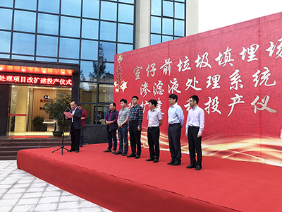 11月13日,福建泉州室仔前垃圾填埋場滲濾液處理系統改擴建工程正式投產,泉州市公用事業局王天祥局長、陳大慶副局長、泉州市環衛處許景源主任、圣元環保朱煜煊董事長、華綠環保首席專家——華南理工大學汪曉軍教授一行人等參加了投產儀式。